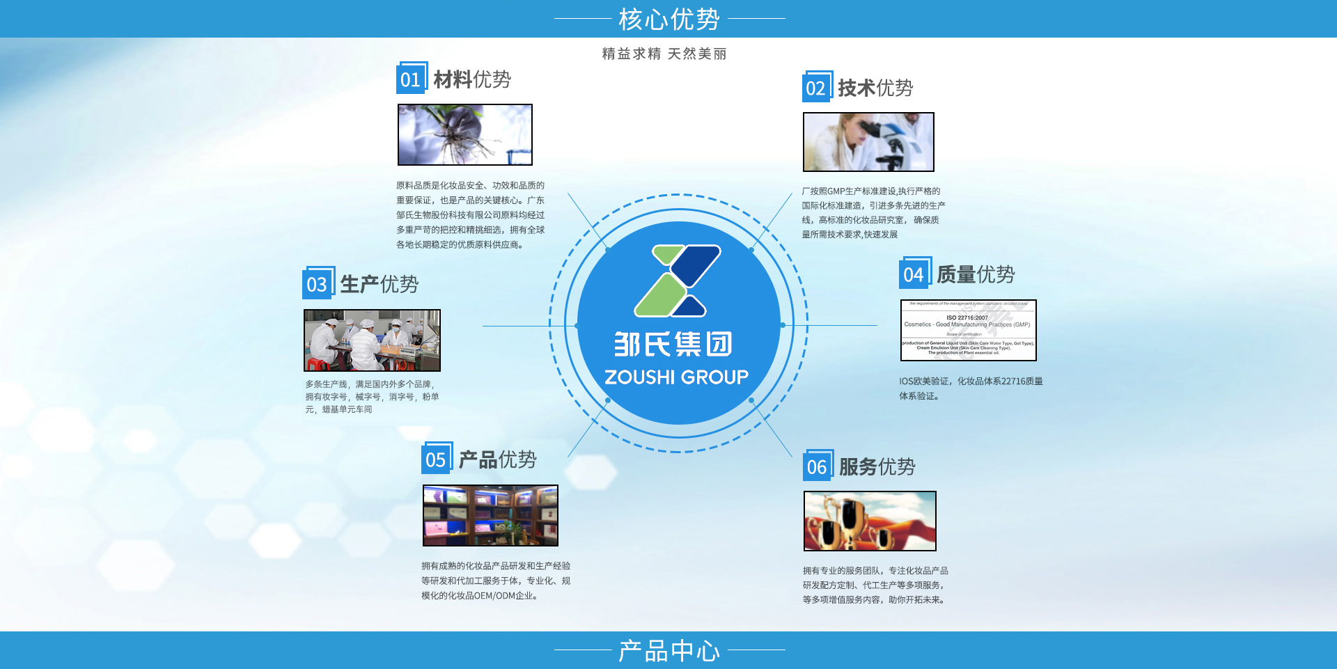 廣東鄒氏生物科技股份有限公司是一家集原料研制、配方開發(fā)、加工生產(chǎn)及配套性服務(wù)為一體的全球化化妝品OEM/ODM服務(wù)企業(yè)。鄒氏生物秉承“精益求精,天然美麗”的經(jīng)營(yíng)理念,始終孜孜不倦的在美業(yè)領(lǐng)域深耕,經(jīng)過不斷發(fā)展完善與技術(shù)提升,在行業(yè)內(nèi)頗具口碑和影響力。公司擁有雄厚的資金實(shí)力、先進(jìn)的生產(chǎn)設(shè)備以及大批高精專的人才儲(chǔ)備,旨在打造一個(gè)純自主研發(fā),純自主生產(chǎn)以及管理的高科技日用美妝OEM/ODM品牌。 在延續(xù)高質(zhì)量產(chǎn)品和服務(wù)的同時(shí),鄒氏生物始終秉承著純粹的生產(chǎn)理念,在研發(fā)、生產(chǎn)、品控、營(yíng)銷等多方面升級(jí),配備雄厚的科研力量,引進(jìn)先進(jìn)生產(chǎn)設(shè)備,遵循嚴(yán)苛的品質(zhì)管理標(biāo)準(zhǔn),提供專業(yè)的全方位營(yíng)銷服務(wù),最大程度地實(shí)現(xiàn)資源整合,致力于成為世界優(yōu)秀化妝品工廠。為廣大品牌商以及消費(fèi)市場(chǎng)輸送品質(zhì)優(yōu)越、高效安全的日用化工、美容美妝、肌膚護(hù)理產(chǎn)品。